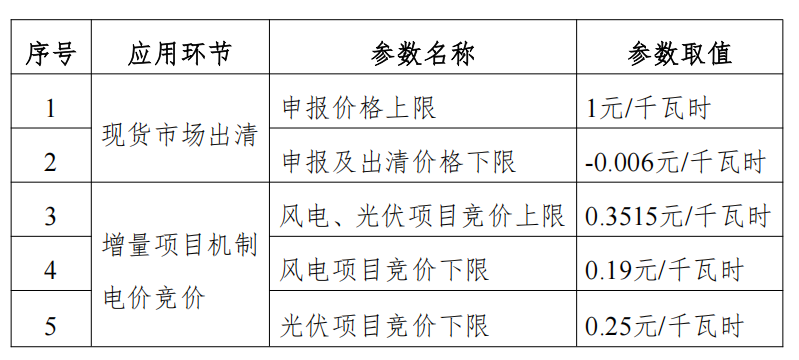 文件明確,現貨市場出清上下限等指標參數(試行)。