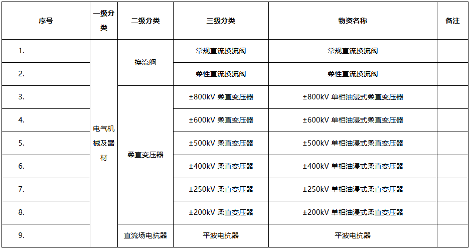 為保障藏東南至粵港澳大灣區(qū)±800千伏特高壓直流輸電工程的進度,現組織開展受端換流站直流主設備和材料采購工作,包括柔性直流換流閥及其附屬設備、柔直變壓器、直流穿墻套管、直流控制保護、直流測量裝置、直流場電抗器、柔性直流換流站用避雷器、直流場電容器、旁路開關與直流轉換開關、直流高速并列開關(HSS)、直流隔離開關和接地開關、直流絕緣子、直流管母、直流金具等物資。