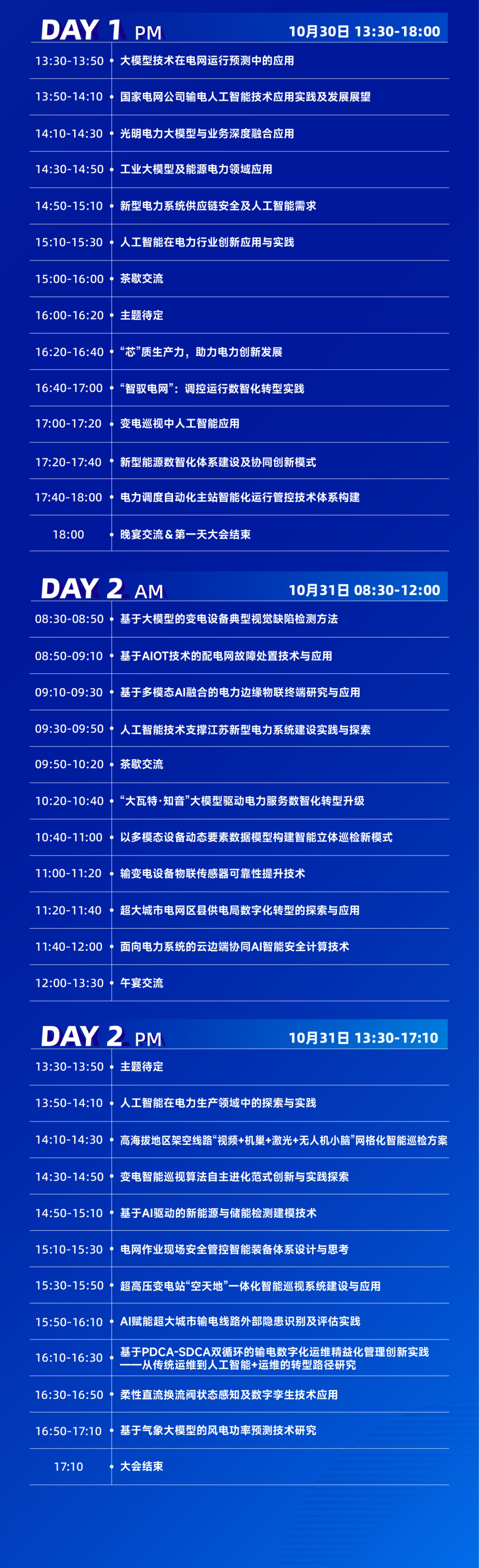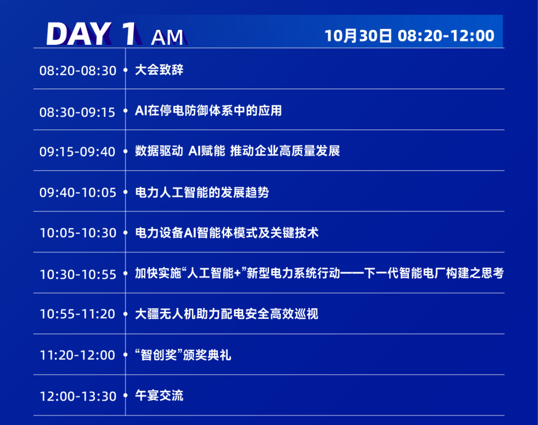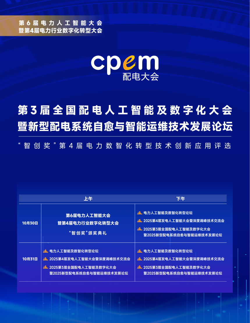 2025年10月30-31日,“第6屆電力人工智能大會暨第4屆電力行業數字化轉型大會”將在山東省青島市盛大召開!同期舉辦2025年度“第3屆全國配電人工智能及數字化大會暨新型配電系統自愈與智能運維技術發展論壇”、“電力人工智能及數智化轉型論壇”以及“第4屆發電人工智能大會暨深度調峰技術交流會”。