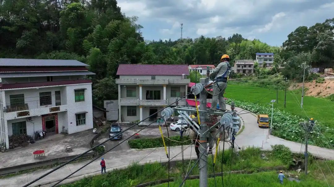 2025年7月10日凌晨4點,在衡山縣白果鎮石溪村,國網衡陽供電公司施工人員正對10千伏貫溪線進行著配網饋線自動化建設,讓線路具有一定自愈能力,進一步提升供電可靠性。