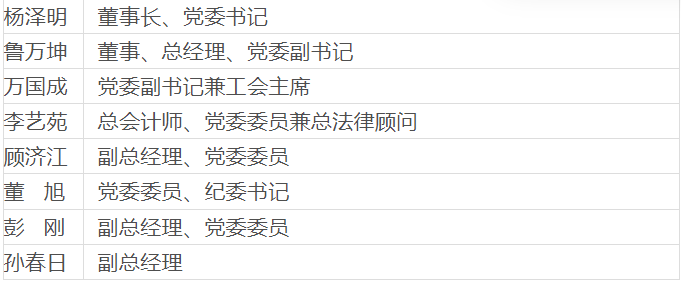 董事長、黨委書記劉國剛;總經(jīng)理、黨委副書記李定林;