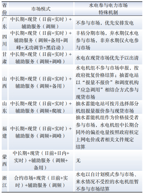 Table 6 Market mechanisms with hydropower participation in the first batch of power spot market pilot provinces in China