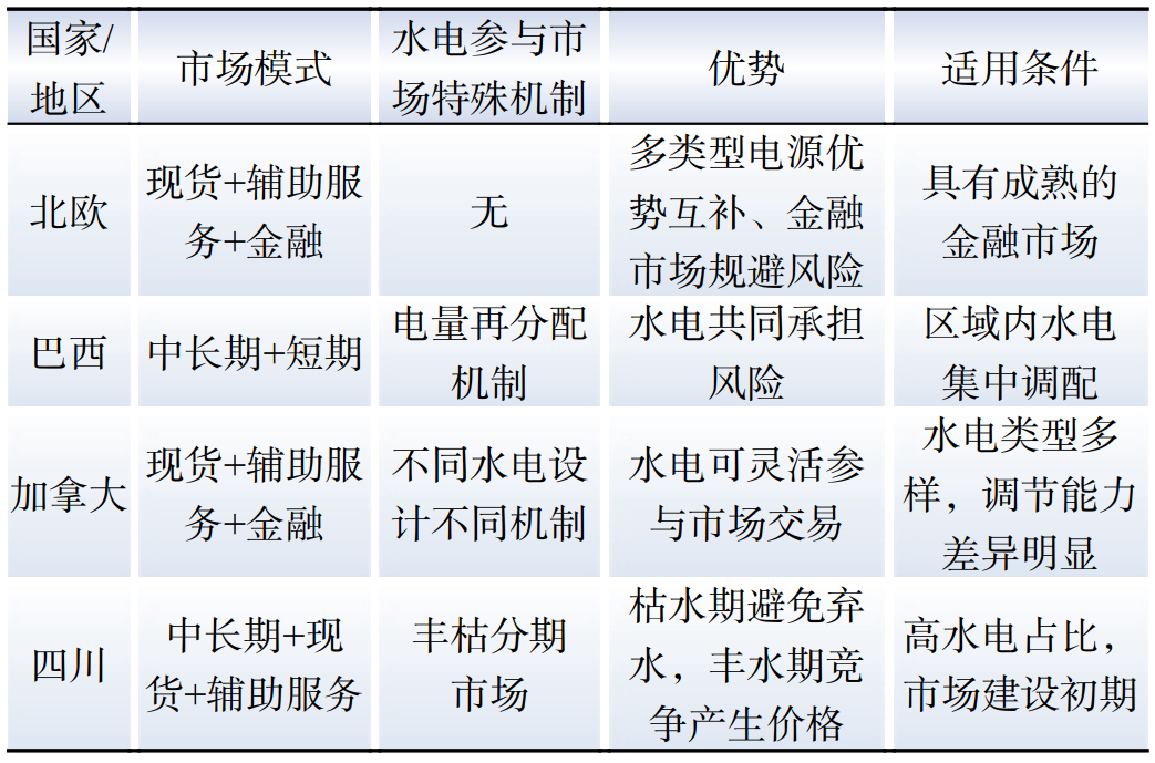 Table 5 Market mechanisms with hydropower participation in different countries / regions