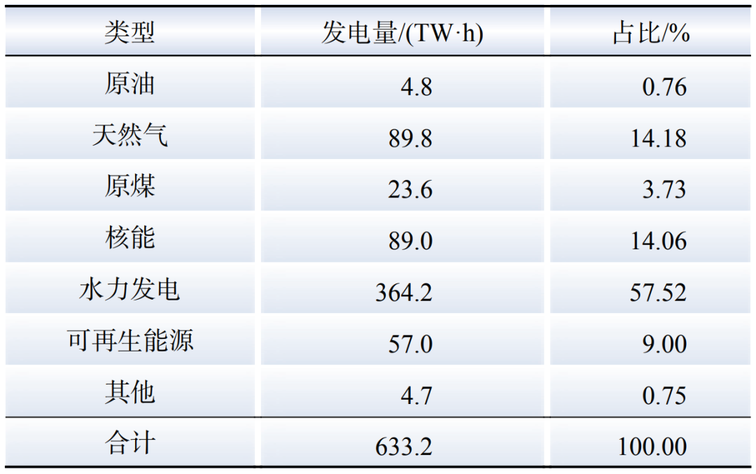 表2 2023年加拿大各類電源發電情況