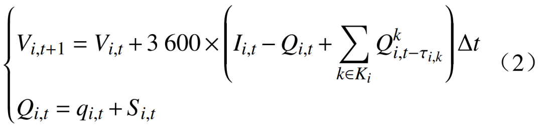 為機組i在第k個上游電站在t?τi,k時段的出庫流量;Ki為電站i的上游電站集合;τi,k為機組i到上游電站k的水流時滯;qi,t為機組i在時段t的發電流量;Si,t為機組i在t時段的棄水流量。