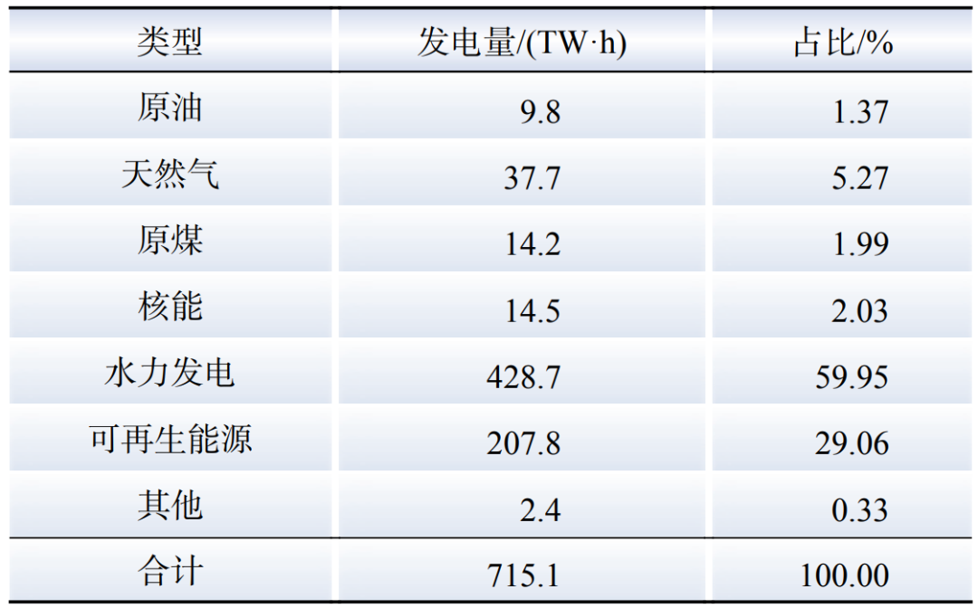 Table 1 Brazil 's power generation of various types in 2023