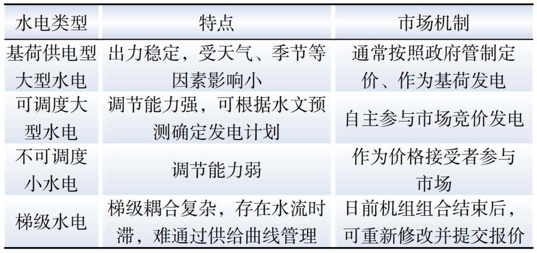 Table 7 Comparison of researches on hydropower participating in market